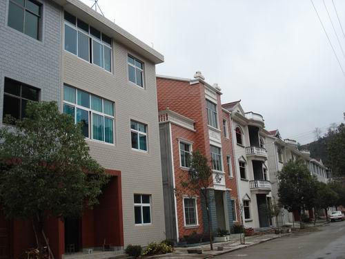 在后业岭村181户农户中,96%的农户已建起新房,村里小洋房比比皆是,而且绝大多数的小洋楼外立面都贴上了漂亮的瓷砖,没有一户人家的新房使用传统的石灰外粉刷。这在全县新农村中也属罕见,足以说明该村农户整体经济实力。在这个高低起伏的山村中,漂亮的小洋楼随坡就势,分布在溪的两岸,错而不乱,别有韵味。村中从道路到门前屋后,该硬化的地面都已硬化,但村里特意留下的菜地、花坛还是让人深深地感到居住在山村的惬意。村里的环境相当整洁。据村支部书记张阳仁介绍,该村良好的卫生环境不但依赖于健全的卫生保洁长效机制和设施,更重要的是,经过四五年时间的整治,村里的基础设施日趋完善,环境卫生意识已深入人心,村风也越来越文明,大家都不忍心破坏这来之不易的好环境。