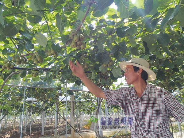 周越良在灵溪园家庭农场查看猕猴桃长势